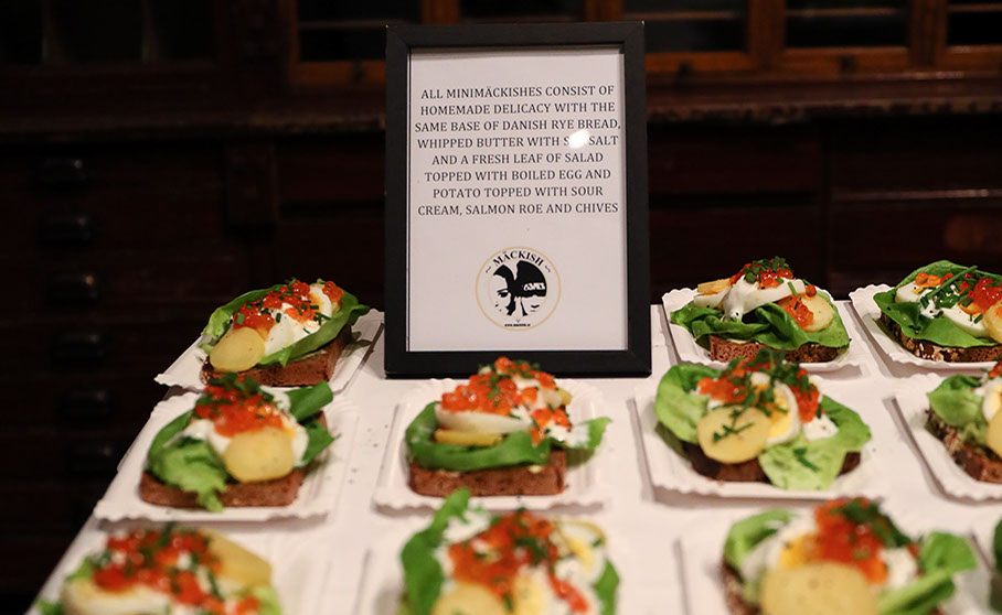 Catering for the prestigious opening ceremony of the Nordic tech hub in Asia. Ministers and royalties on the guestlist. Mäckish served 3 Swedish sandwiches containing ingredients as moose, lingonberries and rutabaga.