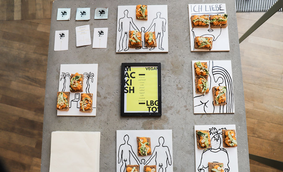 Event by the Swedish Embassy to enlighten the day of LGBTQIA people and the rights. Mäckish was served on special painted tiles which were inspired by the event theme. Natural wines and sustainable mäckish bites were on the menu.